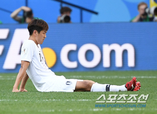 2018 러시아월드컵 한국과 스웨덴의 조별 예선 첫 경기가 18일 오후(한국시각) 러시아 니즈니 노브고로드 스타디움에서 열렸다. 경기가 0-1로 끝나자 김영권 등 선수들이 고개를 숙이고 있다. 니즈니노브고로드(러시아)=정재근 기자 cjg@sportschosun.com