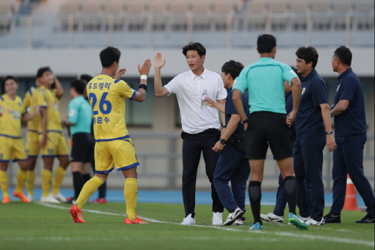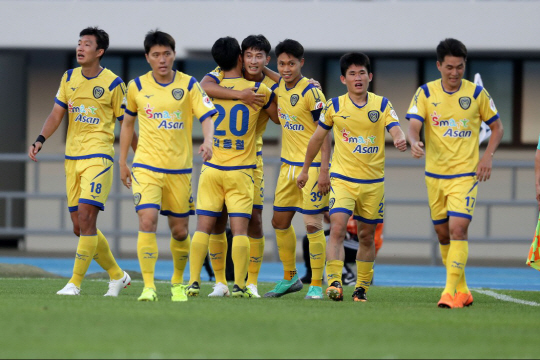 박동혁 감독의 아산 무궁화(경찰축구단)가 2018년 KEB하나은행 K리그2(2부) 중반 선두를 달리고 있다. 13경기(7승6무) 연속 무패행진을 달리며 9경기를 남겨둔 29일 현재 아산은 승점 47점으로 2위 성남FC(승점 46)에 승점 1점 앞서 있다. 3위 부산 아이파크(승점 40)와는 승점 7점차다. 지금과 같은 흐름과 경기력이라면 아산은 이번 시즌 K리그2 우승 또는 승격 플레이오프(PO)를 치를 가능성이 높다. 1위를 하면 2019시즌 1부 승격 자격을 얻고, 2~4위를 할 경우 승격 PO를 치르게 된다. 아산은 현재 주세종 황인범 같은 국가대표 미드필더들을 보유하고 있다.