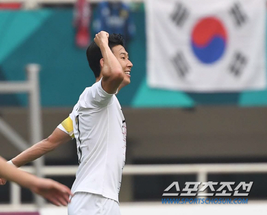 29일 오후 인도네시아 보고르 파칸사리 스타디움에서 '2018 자카르타 팔렘방 아시안게임' 남자 축구 4강전 한국과 베트남의 경기가 열렸다. 전반 황의조의 두 번째 골 때 손흥민이 환호하고 있다. 보고르(인도네시아)=김경민 기자 kyungmin@sportschosun.com /2018.08.29/