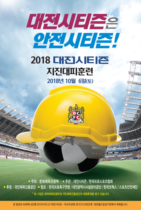 국내 프로스포츠 구단 최초로 경기 현장에서 관람객이 직접 참여하는 지진 대피 모의훈련이 열린다.
