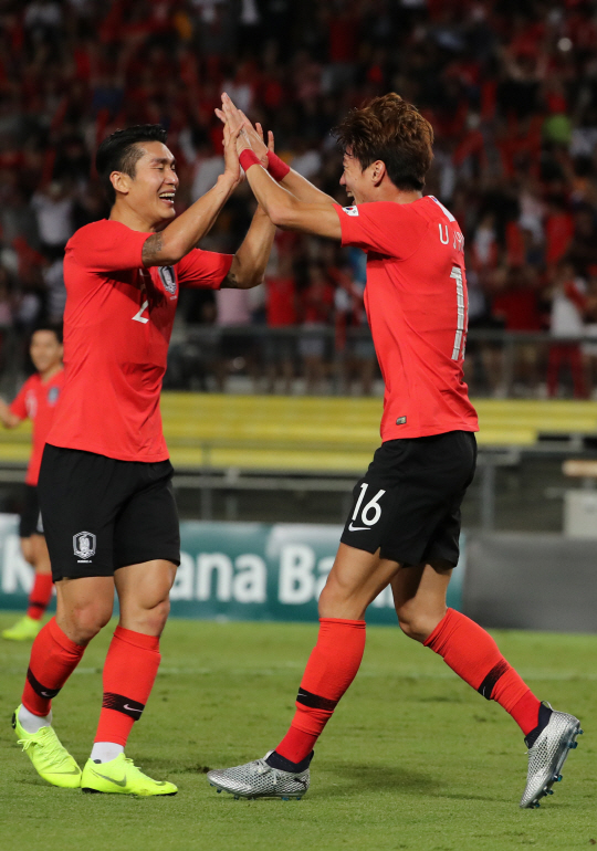 한국이 우즈베키스탄을 상대로 2-0 리드를 잡았다.