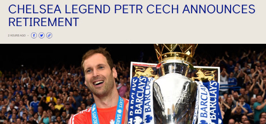 15일(한국시각) 첼시 구단은 공식 홈페이지를 통해 '첼시 출신의 위대한 골키퍼 페트르 체흐가 오늘 이번 시즌을 마지막으로 은퇴를 선언했다'고 전했다.