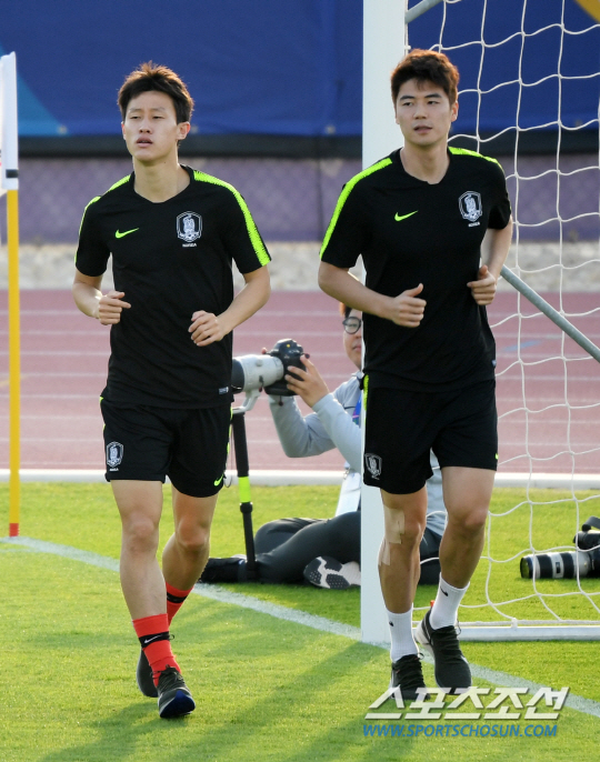 파울루 벤투 감독이 이끄는 축구대표팀이 13일 아랍에미리트 아부다비 NYUAD 애슬래틱 필드에서 2019 AFC 아시안컵 조별리그 3차전 중국전에 대비한 회복훈련을 가졌다. 부상이 있었던 기성용 이재성이 런닝으로 몸을 풀고 있다. 아부다비(아랍에미리트)=허상욱 기자 wook@sportschosun.com/2019.01.13/