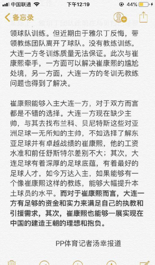 톈진과 계약 해지한 최 감독은 마침 사령탑을 급구하던 슈퍼리그 다롄 이팡과 새로운 감독 계약에 합의한 것으로 알려졌다.[18일 스포츠조선 단독보도]