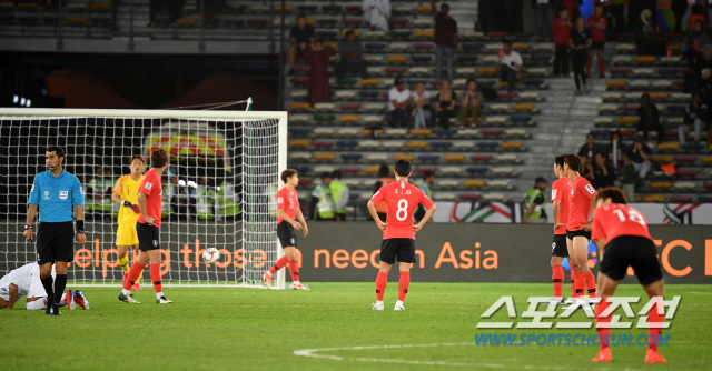 한국과 카타르의 2019 AFC 아시안컵 8강전 경기가 25일(현지시간) 아랍에미리트 아부다비 자예드 스포츠시티 스타디움에서 열렸다. 후반전, 카타르 하템에게 선제골을 허용하고 있다. 아부다비(아랍에미리트)=허상욱 기자 wook@sportschosun.com/2019.01.25/