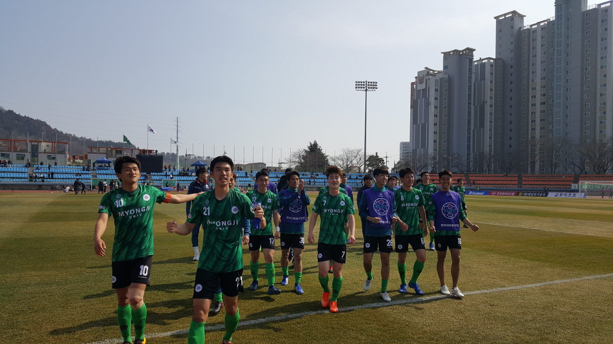우승이 확정되는 순간, 명지대 선수들은 모두 그라운드로 뛰어나와 얼싸안고 기쁨을 나눴다. 울산대 선수들은 패배가 믿기지 않는다는 듯 그라운드에 주저 앉아 한숨을 내쉬었다.