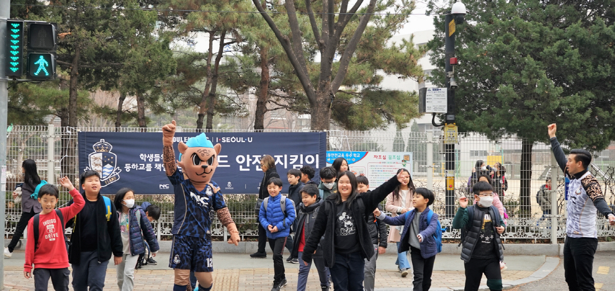 첫 방문지는 서울 송파구에 위치한 아주초등학교였다. 학교를 방문한 '레울'은 학생들과 신호등을 같이 건너고, 함께 사진을 찍으며 신학기에 들어가는 학생들에게 즐거움을 선사했다. 또한, 하교하는 학생들과 인사하며 구단 미니 일정표를 나눠줬다. 이를 통해 구단 및 홈경기 일정도 홍보했다.