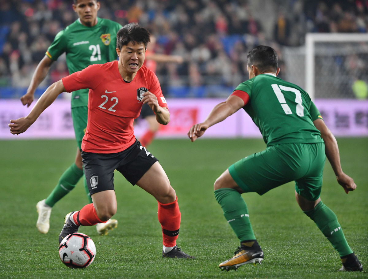 한국과 볼리비아 축구대표팀의 평가전이 22일 오후 울산문수경기장에서 열렸다. 한국 권창훈이 볼을 다투고 있다. 울산=김경민 기자 kyungmin@sportschosun.com/2019.03.22/
