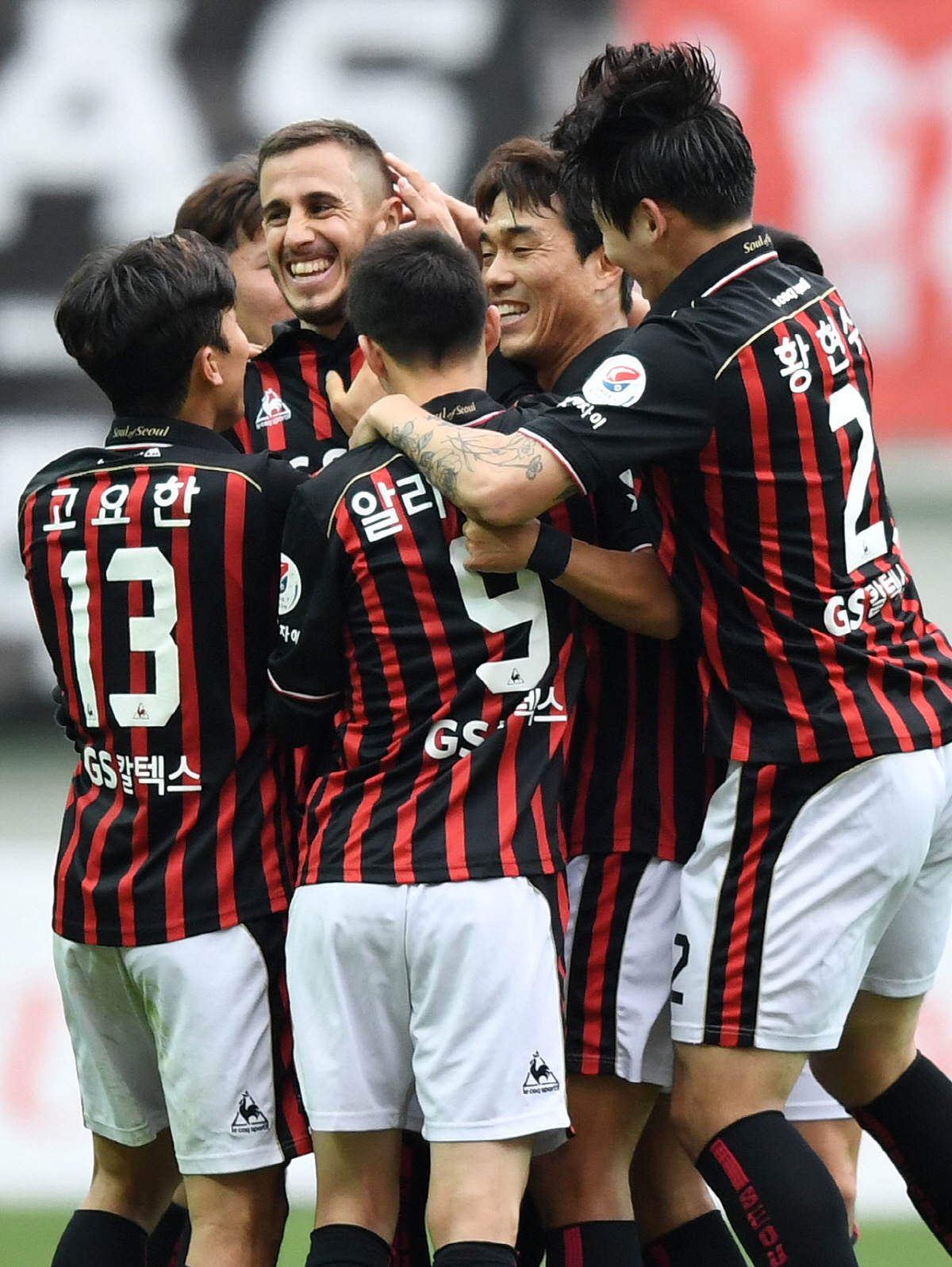 2019 K리그1 FC서울과 경남FC의 경기가 6일 오후 서울월드컵경기장에서 열렸다. 서울 페시치가 선제골을 넣은 후 동료들과 함께 환호하고 있다. 서울월드컵경기장=정재근 기자 cjg@sportschosun.com/2019.04.06/