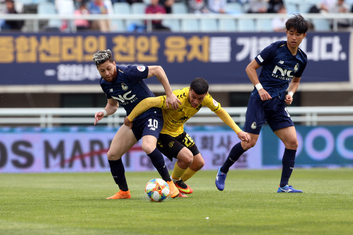이랜드가 마지막 교체카드를 썼다. 후반 39분 알렉스 대신 '천안의 아들' 고준영을 넣었다. 하지만 끝내 결승골은 터지지 않았다. 이랜드는 경기 종료 직전 고준영과 쿠티뉴가 연달아 슈팅을 날렸지만, 골대를 빗나갔다. 결국 두 팀은 1대1 무승부로 경기를 마무리했다.