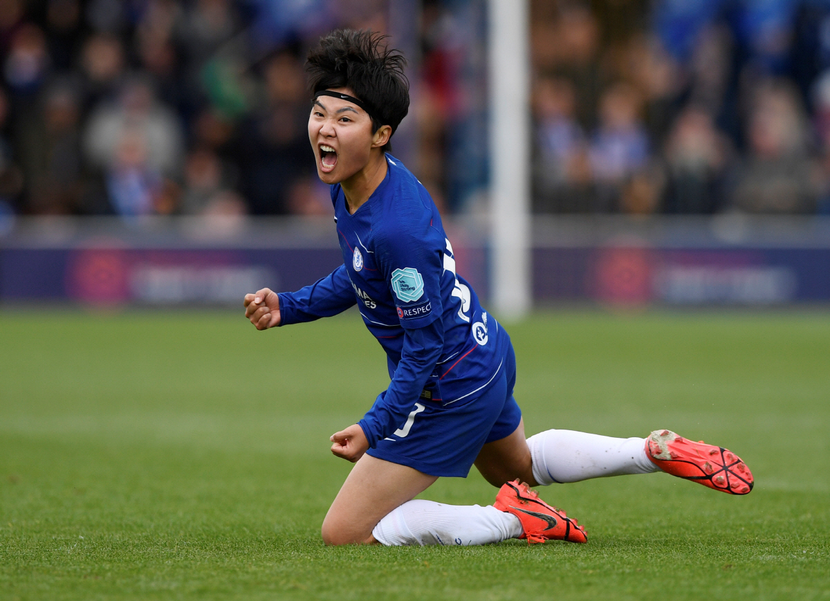 첼시는 공세로 나섰다. 골이 필요했다. 32분 지소연이 찬스를 만들었다. 오른쪽을 파고들어간 뒤 패스를 찔렀다. 첼시 공격수는 파울을 얻어냈다. 아크서클 바로 앞이었다. 지소연이 키커로 나섰다. 수비벽을 살짝 넘기는 슈팅을 때렸다. 동점골이었다. 전반 34분이었다.