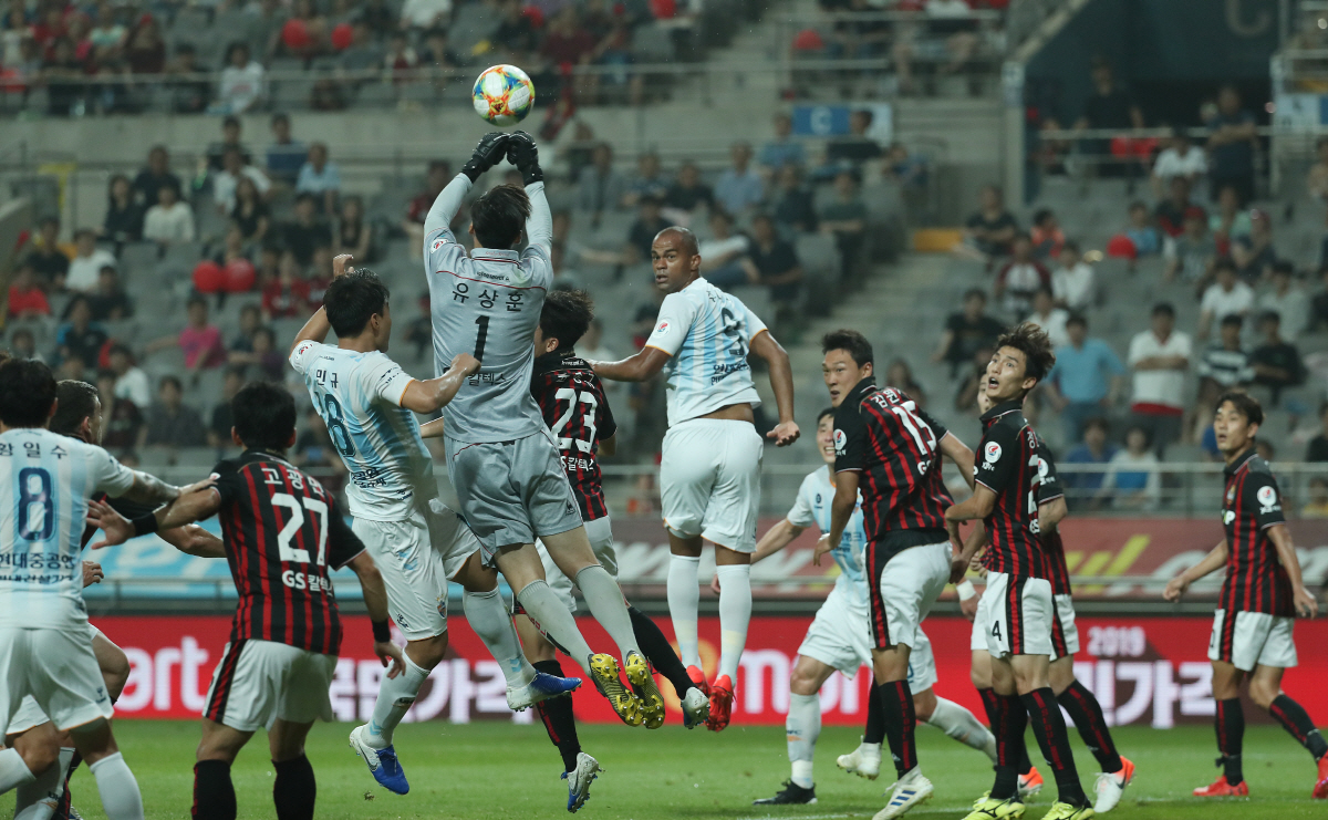 유상훈 선방 (서울=연합뉴스) 신준희 기자 = 30일 서울월드컵경기장에서 열린 K리그 FC서울과 울산 현대의 경기. FC서울 골키퍼 유상훈이 골 찬스를 무산시키고 있다. 2019.6.30 hama@yna.co.kr (끝)