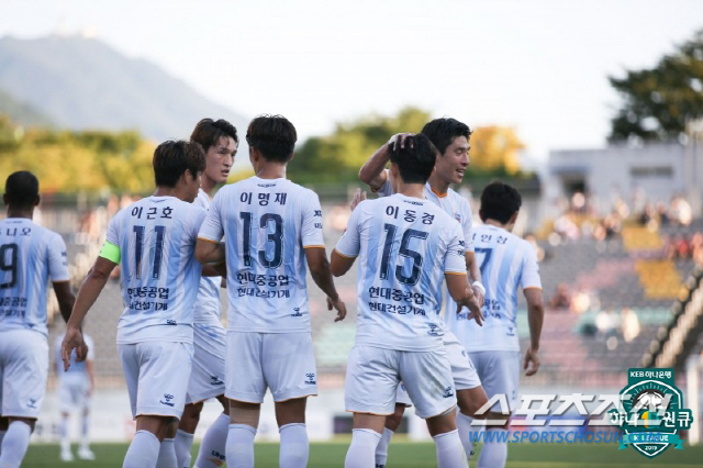 14일 경남 원정, 돌아온 울산에서 선발출전한 이동경은 자신감 넘치는 몸놀림으로 기어이 골맛을 봤다. 1-2로 밀리던 전반 23분, 주장 이근호가 뒤꿈치로 쓱 흘려준 볼을 놓치지 않았다. 수비 사이를 뚫고 왼발로 밀어넣었다. 퇴장 징계로 관중석에서 경기를 지켜보던 김도훈 울산 감독이 뜨겁게 환호했다.