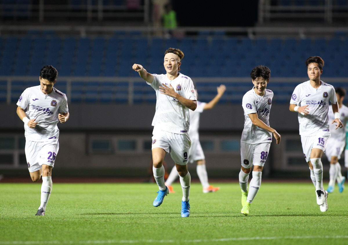 이날 안산-안양전은 소위 '승점 6점짜리' 더비로 회자됐다. 3위 안산(승점 42)과 4위 안양(승점 40)의 승점차는 1점. 이날 승패에 따라 순위가 뒤바뀔 수 있는 상황, 올시즌 2경기에서 2무, 승부를 가리지 못한 양팀은 자존심을 걸었다. 전반 30분까지는 안산의 두 줄 수비에 갇혔다. 그러나 전반 30분 코너킥 상황, 9월 김학범호 승선 후 한뼘 더 성장해 돌아온 '안양 대세' 조규성의 대활약이 시작됐다. 김상원의 크로스에 조규성이 높이 치솟았다. 볼의 방향을 돌려놓는 날선 고공 헤더가 골문 안으로 빨려들었다. 불과 4분 후인 전반 34분, 이번엔 조규성의 오른발이 빛났다. 김상원의 슈팅을 안산 골키퍼 황인재가 쳐내기가 무섭게 조규성이 쇄도하며 오른발로 밀어넣었다. 불과 4분만에 시즌 11-12호골이 작렬했다. 조규성은 헤딩 선제골 장면에 대해 "경기에 집중하느라 머리가 아픈 줄도 몰랐다"고 했다. "올시즌 첫 세트피스 골이었다. 값진 승리를 하게 돼 너무 기쁘다"는 벅찬 소감을 전했다.
