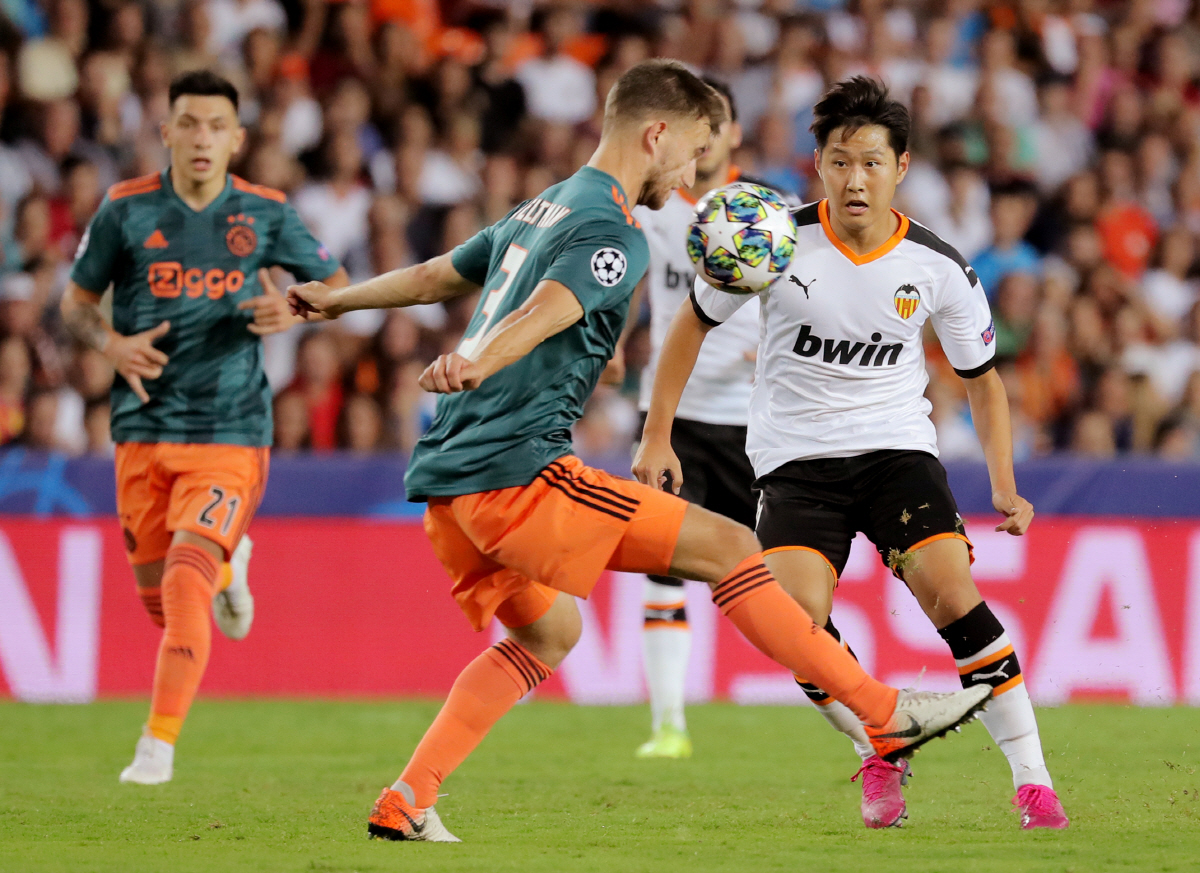 이강인은 3일 새벽(한국시각) 스페인 발렌시아 캄프 데 메스타야에서 열린 2019~2020 UCL 조별리그 H조 2차전 아약스(네덜란드)와의 홈경기에 출전했다. 선발 멤버는 아니었지만, 0-2로 뒤지던 후반 12분에 막시 고메즈와 교체돼 그라운드에 나섰다. 고메즈는 원래 발렌시아의 선발 포메이션 4-4-2 시스템의 왼쪽 투톱이었다. 이강인이 투입되면서 발렌시아는 포지션을 약간 수정했다. 이강인은 2선 측면에서 주로 활동했다.