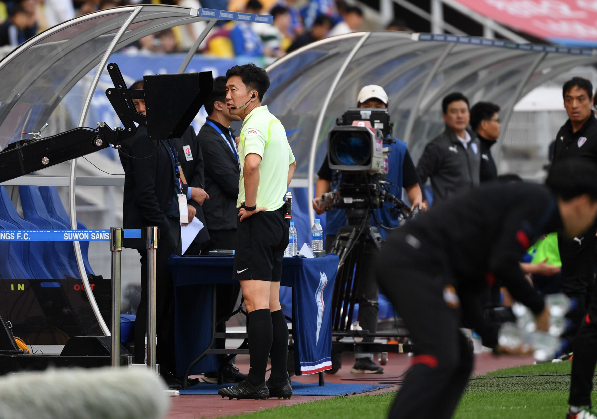 수원삼성과 FC서울의 K리그1 2019 33라운드 경기가 6일 수원월드컵경기장에서 열렸다. 전반 주심이 VAR 비디오판독을 하고 있다. 서울의 페널티킥이 선언되며 박주영의 선제골이 터졌다. 수원=허상욱 기자 wook@sportschosun.com/2019.10.06/