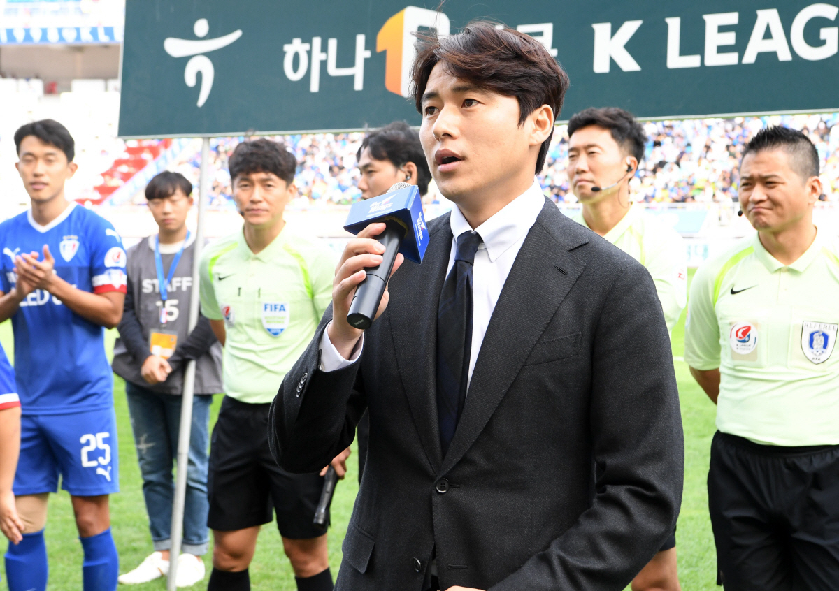 수원삼성과 FC서울의 K리그1 2019 33라운드 경기가 6일 수원월드컵경기장에서 열렸다. 경기 전 수원 백지훈이 은퇴식이 진행됐다. 팬들에게 인사말을 하는 백지훈의 모습. 수원=허상욱 기자 wook@sportschosun.com