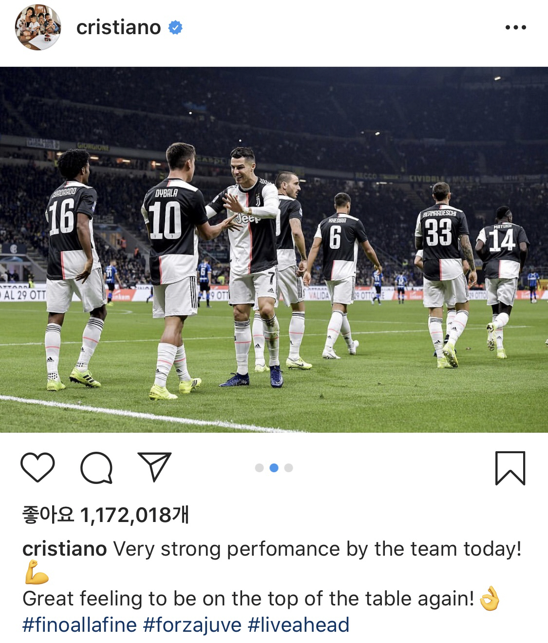 호날두는 경기 후 자신의 SNS에 '오늘 우리는 팀으로 매우 강력한 경기력을 보여줬다'고 흥분하며 '선두에 다시 오르니 기분이 좋다'는 메시지를 경기 사진들과 함께 게재했다.