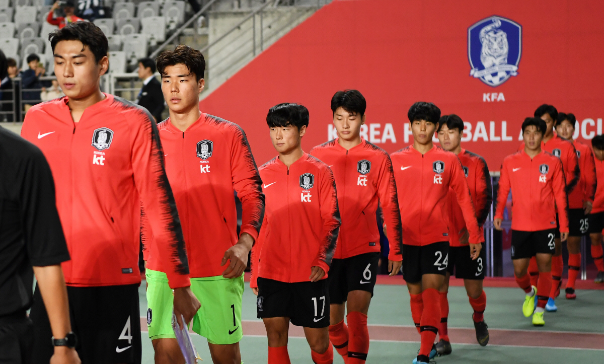 U22 축구 대표팀 친선경기 한국과 우즈베키스탄의 경기가 11일 오후 화성종합경기타운 주경기장에서 열렸다. 한국 선수들. 화성=박재만 기자 pjm@sportschosun.com /2019.10.11/