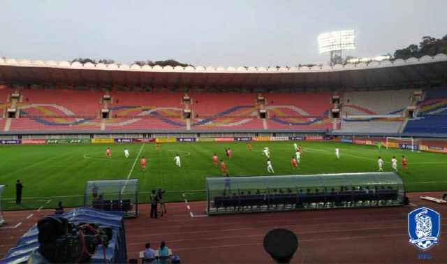 [스포츠조선 윤진만 기자]한국과 북한 축구대표팀이 평양에서 팽팽한 접전을 펼치는 중이다.