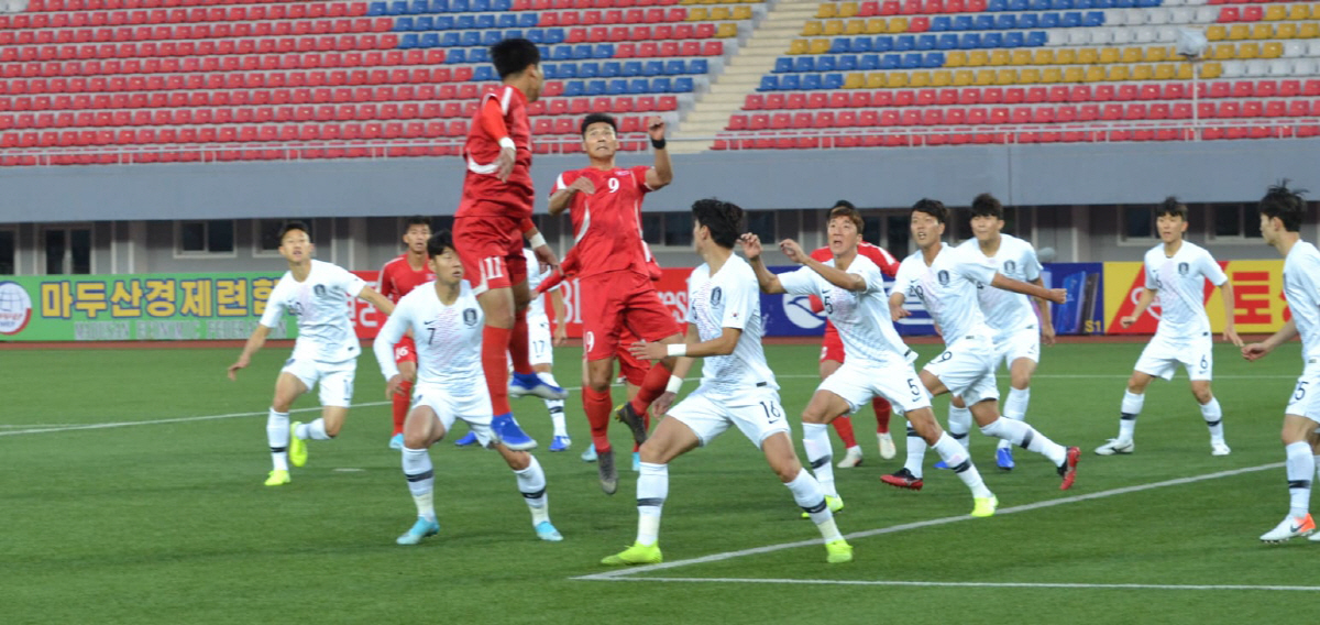 당연히도 북한의 공격 상황을 촬영했는데, ▲코너킥 상황에서 공을 향해 점프하는 '유럽파' 박광룡과 긴장한 표정으로 공을 바라는 한국 선수들 ▲한국팀 주장 손흥민을 앞에 둔 리영철의 헤더 ▲한국 골키퍼 김승규가 크로스바 부근에서 높이 뜬 공을 아슬아슬하게 처리하는 상황 등이다.