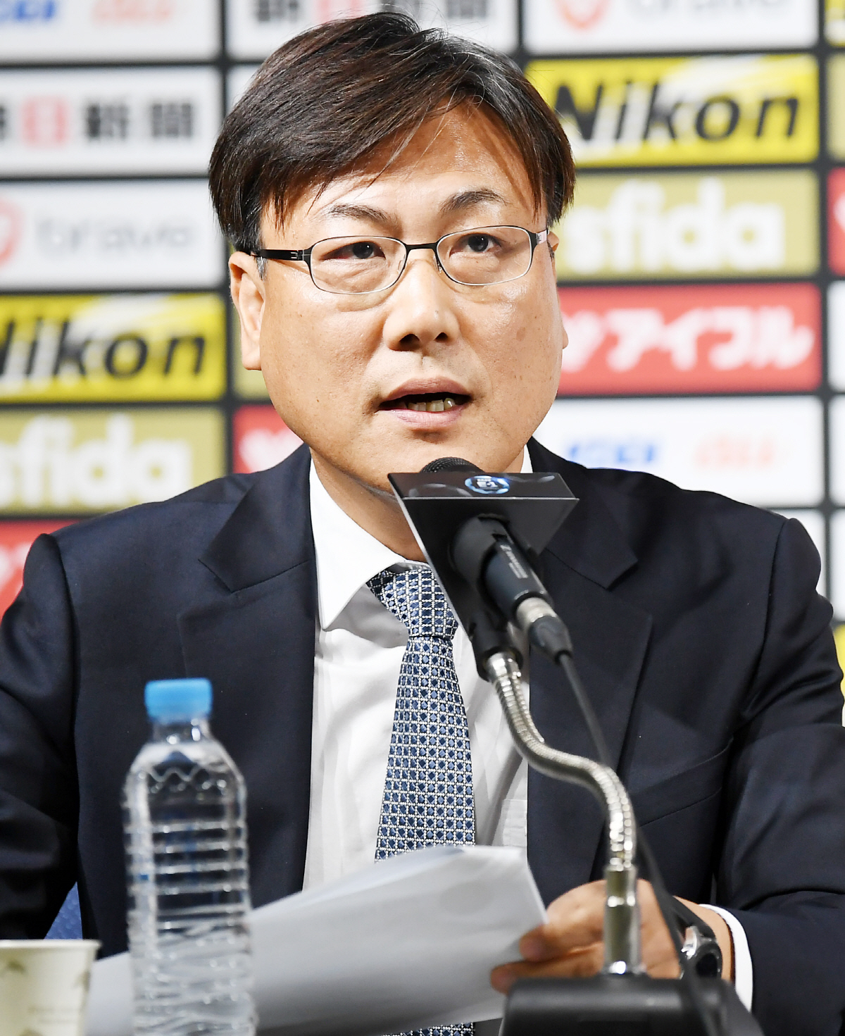 박용수 동아시아축구연맹(EAFF) 사무총장이 30일 오전 10시 서울 신문로 축구회관에서 EAFF E-1챔피언십 킥오프 기자회견에서 북한 여자축구대표팀의 불참 과정과 이유를 소상히 밝혔다. 제재 계획에 대한 질문에 "현재로서는 없다"고 일축했다. 이날 기자회견에는 홍명보 대회 운영본부장(대한축구협회 전무), 박용수 동아시아축구연맹 사무총장, 벤투 감독, 벨 감독이 자리했다.