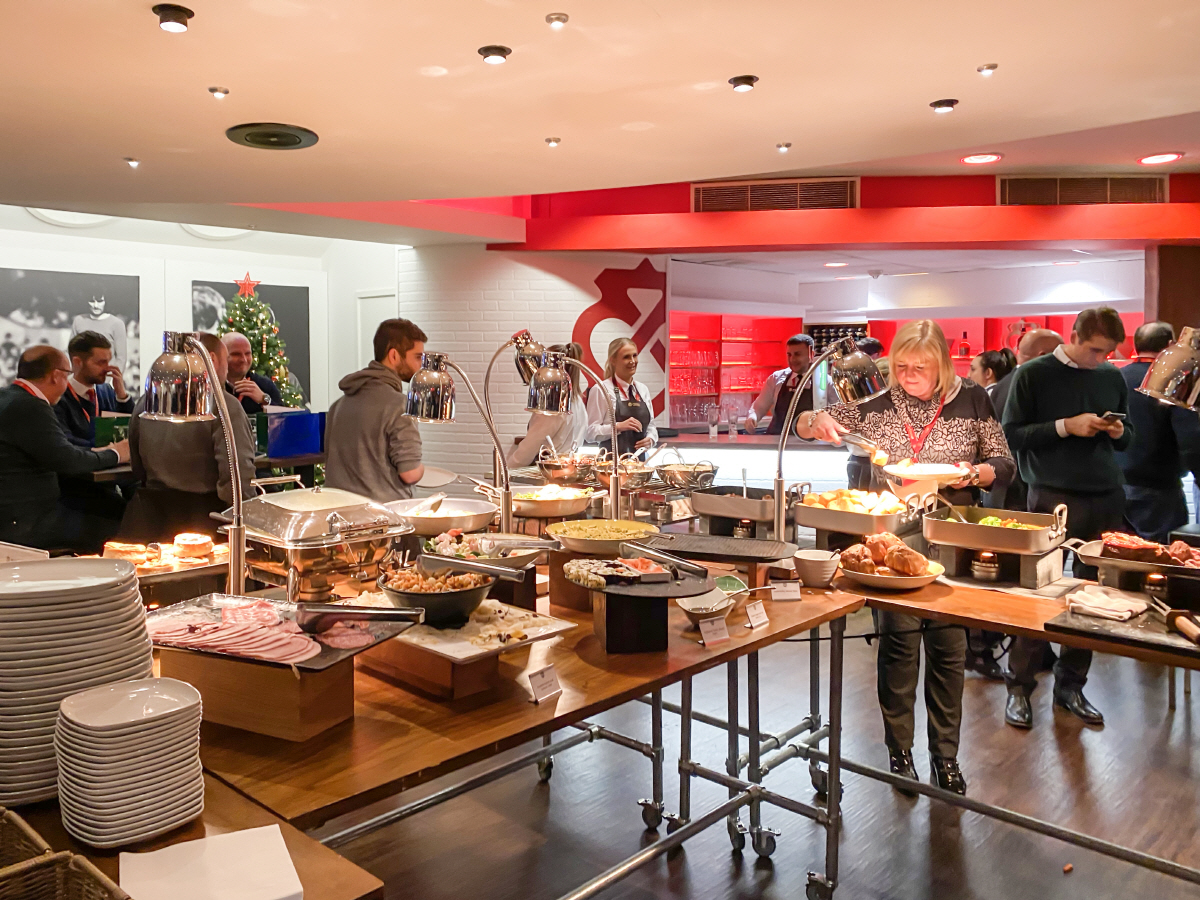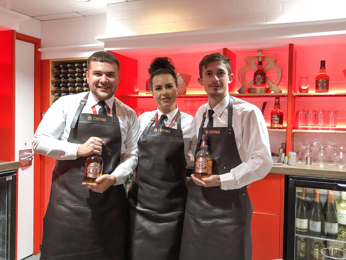 시바스 리갈의 호스피탈리티가 마련된 '워윅 스위트(WARWICK SUITE)'로 향했다. 올드트래퍼드에는 총 21개의 스위트와 140개의 VIP박스가 있다. 각각의 스위트에는 뷔페 음식과 음료를 마실 수 있는 바가 있다. 그중에서도 워윅 스위트는 럭셔리한 분위기 속에서 축구 관계자와 스폰서, 그리고 VIP들이 함께 어우러지며 부드러운 풍미의 시바스를 즐기기에 안성맞춤인 공간이었다.