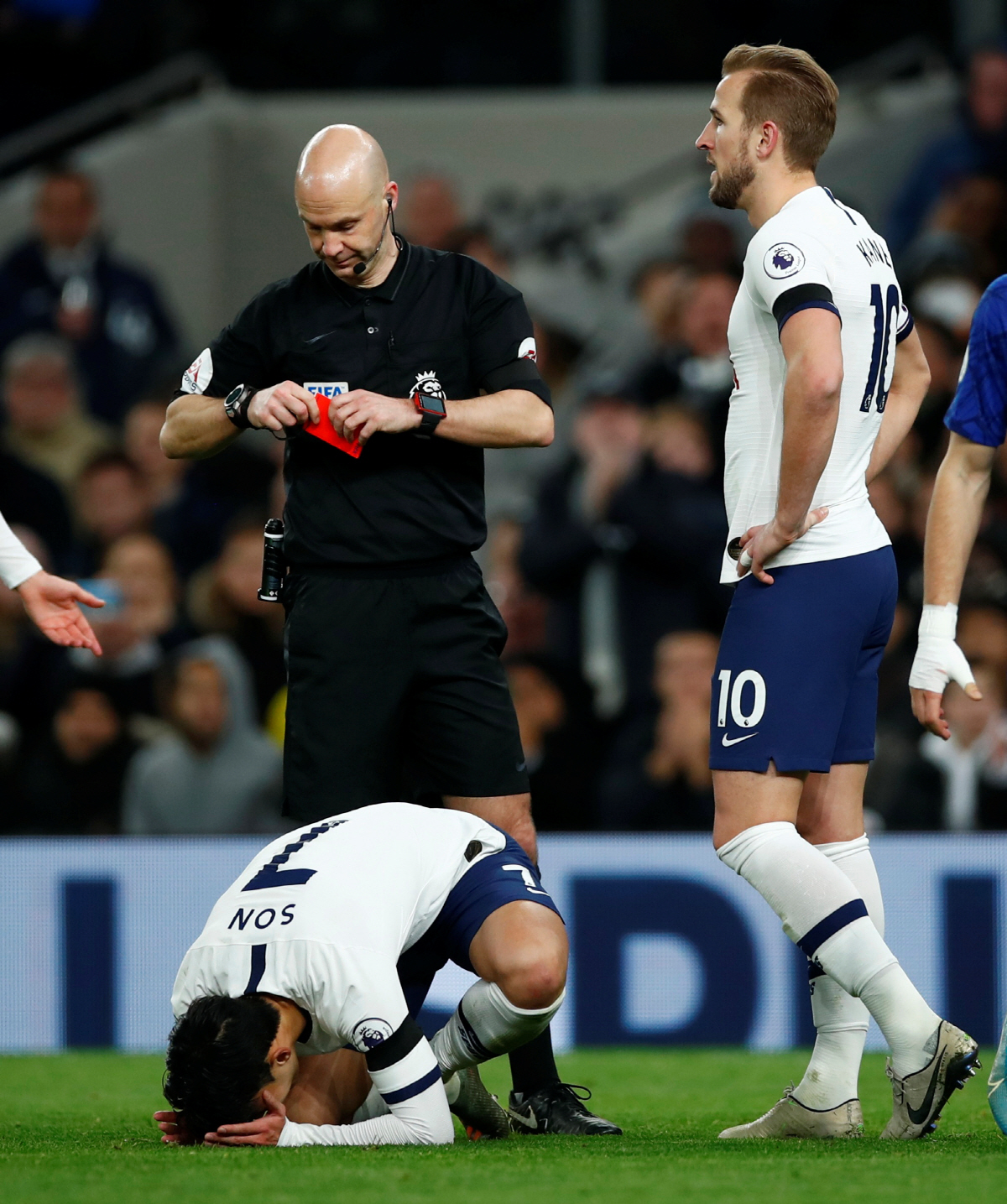 손흥민이 23일 새벽(한국시각) 영국 런던 토트넘 홈 구장에서 벌어진 첼시와의 런던 라이벌전에서 퇴장 당했다. 팀이 0-2로 끌려간 후반 17분 손흥민은 VAR(비디오판독) 이후 앤서니 테일러 주심으로부터 레드 카드를 받고 그라운드를 떠났다. '위험한 행동'을 했다는 판단 때문이었다.