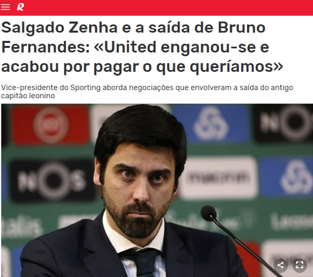 [스포츠조선 윤진만 기자]브루노 페르난데스(25·맨유)를 사이에 둔 기나긴 협상에서 유리한 결과를 끌어낸 쪽이 전 소속팀 스포르팅CP인 것으로 다시 한번 드러났다.