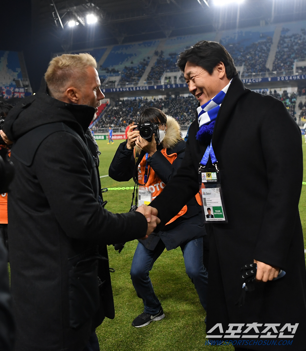 아시아챔피언스리그(ACL) 조별리그 수원 삼성과 비셀 고베의 경기가 19일 오후 수원월드컵경기장에서 열렸다. 고베 토르스텐 핑크 감독과 수원 이임생 감독이 악수를 하고 있다. 수원=박재만 기자 pjm@sportschosun.com/2020.02.19/