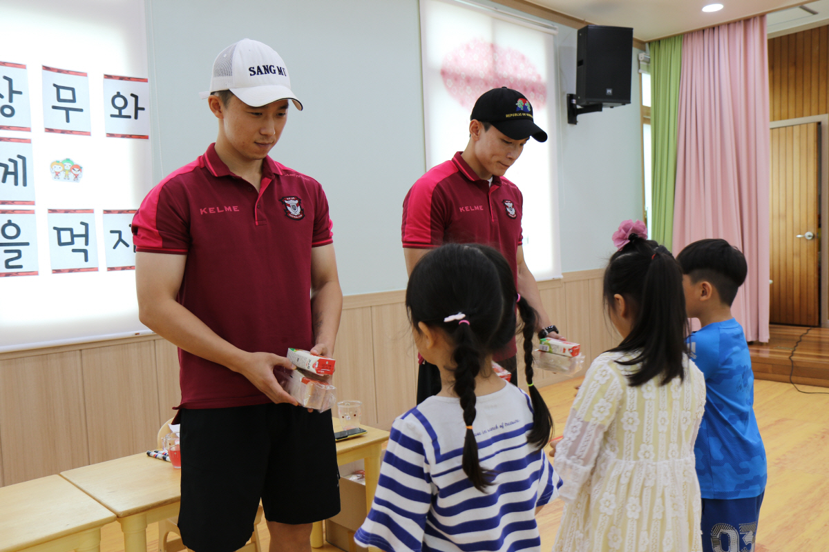 상주는 최근 상주시청에 KF94 마스크 500개를 기부했다. 당초 2020년 하나원큐 K리그1(1부 리그) 홈 개막전에서 활용할 계획이었다. 하지만 개막이 무기한 연기됐다. 상주는 마스크를 '지금 당장' 필요한 계층을 위해 사용했다. 선수들도 선행에 힘을 쓰고 있다. 전세진은 라면과 음료수 등을 기부해 따뜻한 동행에 나섰다.