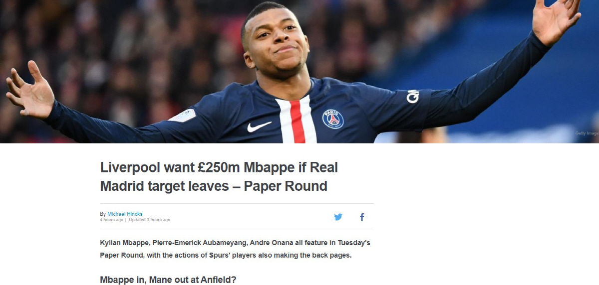 유로스포트는 영국 언론 더선의 보도를 인용하며 이같은 전망을 내놨다. 더선은 이날 '지네딘 지단 레알 마드리드 감독은 사디오 마네(리버풀) 영입을 결심했다. 리버풀은 마네의 빈자리를 음바페로 채울 준비를 하고 있다'고 보도했다.