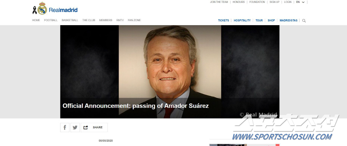 스포츠조선 이원만 기자] 스페인 프리메라리가의 명문구단 레알 마드리드의 부회장을 역임한 아마도르 수아레스가 신종 코로나바이러스 감염증(코로나19)으로 별세했다. 레알은 코로나19로 벌써 두 명째 구단 관계자를 떠나보내게 됐다.