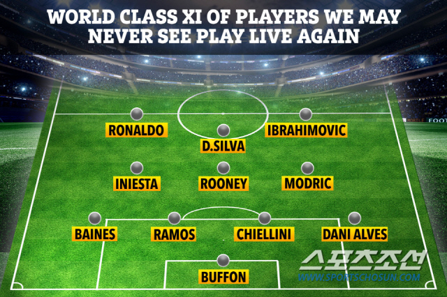 12일(한국시각) '직관으로 뛰는 것을 영원히 볼 수 없을 지도 모르는 월드 클래스 베스트 11. 호날두와 부폰도 포함(World class XI of players we may NEVER see live again including Cristiano Ronaldo and Buffon as fans banned indefinitely)'을 발표했다.