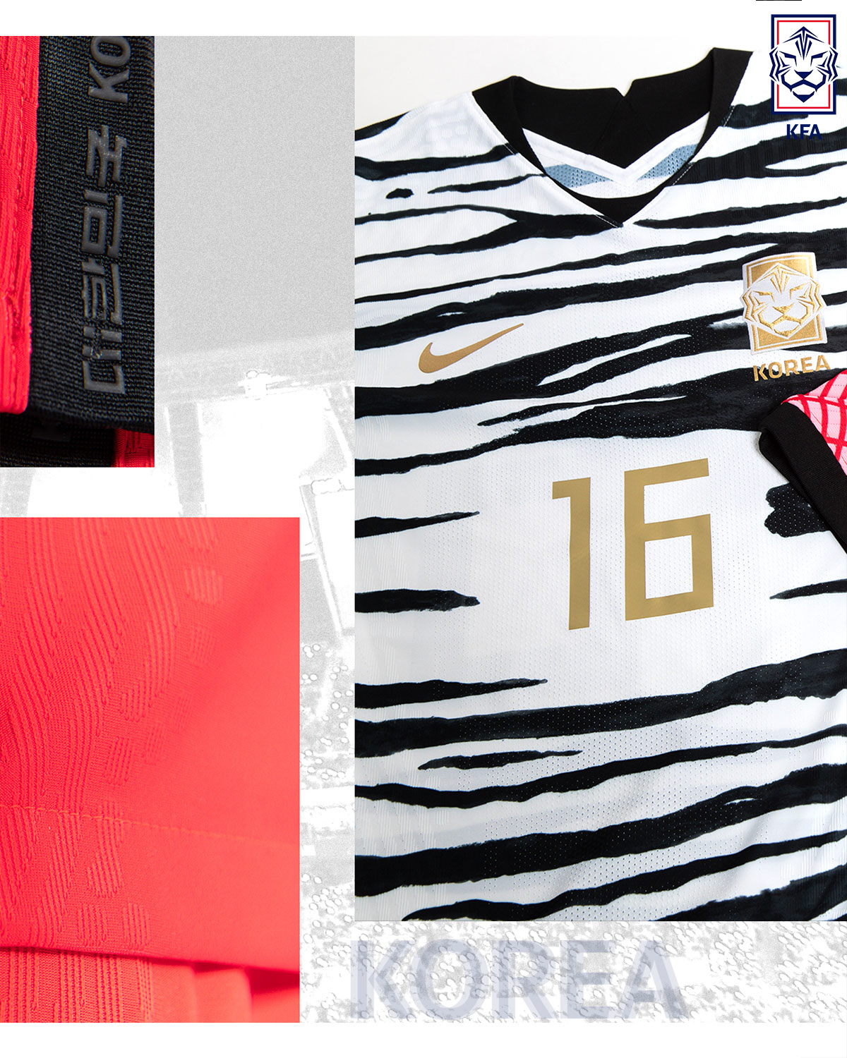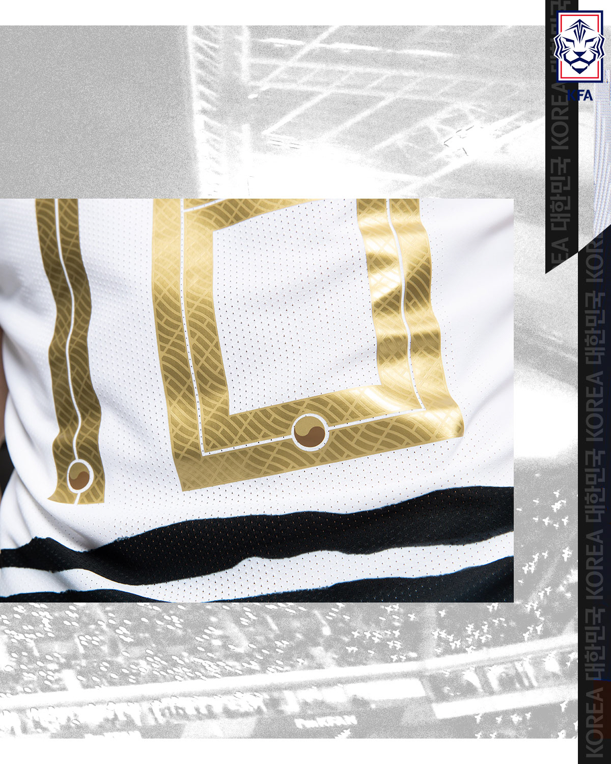 그렇다면 대표팀 유니폼에는 한국의 미가 얼마나 담겨있을까. 붉은색 홈 유니폼은 한류에서 영감을 얻었다. 태극기의 4괘에서 비롯된 물결무늬 패턴을 상의에 새겼다. 흰색 원정 유니폼은 백호의 위풍당당한 모습을 형상화했다. 특히 백호무늬는 디자인팀에서 직접 손으로 그렸다.