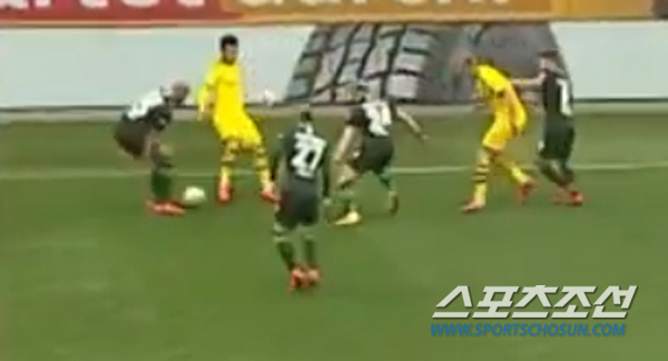 코로나19 정국 내내 맨유, 레알 마드리드 등 빅클럽 이적설에 연결된 산초는 23일 폭스바겐 아레나에서 열린 볼프스부르크와의 2019~2020시즌 독일 분데스리가 27라운드에서 팀이 라파엘 게레이로의 전반 선제골로 1-0 앞선 후반 20분 율리안 브란트와 교체투입했다. 투입 직후 중앙선에서 가까운 우측 사이드라인 부근에서 엘링 홀란드의 패스를 건네받은 산초는 마크맨 존 브룩스의 위치를 미리 간파하고 있다는 듯, 그의 두 다리 사이로 넛멕(알까기)을 시도했다. 감각적인 탈압박 플레이로 볼프스부르크 선수 4명이 촘촘하게 모여있는 공간을 빠져나가려는 찰나, 브룩스가 뒤에서 고의로 다리를 걸었다. 이대로 역습을 허용할 수 없다는 의지. 결국 주심은 브룩스에게 옐로카드를 내밀었다.