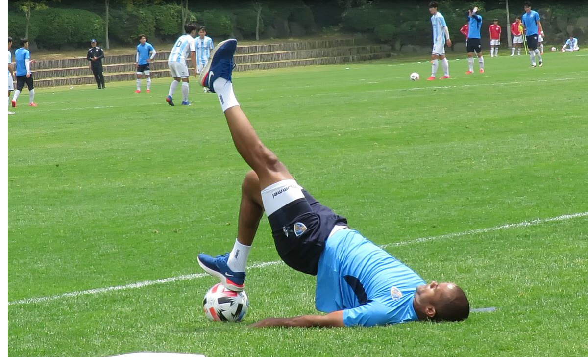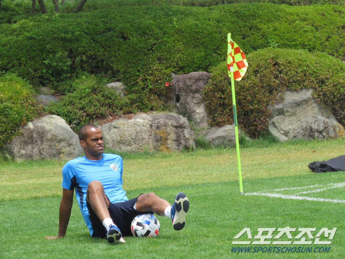 2018년 32경기 22골(득점 3위), 2019년 35경기 19골(득점 2위)…, '울산 3년차' 주니오의 부상 없고, 기복 없는 플레이는 어느날 뚝딱 나온 것이 아니다. 지난 25일 울산 현대-울산대와의 연습경기 현장, '주니오 체조'의 실체를 먼발치에서 지켜봤다. 전날 부산전에 선발로 뛴 선수들은 가벼운 회복훈련을 실시했다. 단체 회복훈련 후 '주니오 체조'가 시작됐다. 그라운드 밖에서 동료들의 연습경기를 지켜보는 눈은 경기장을 향했지만, 몸은 잠시도 멈추지 않았다. 경기가 끝날 때까지 스마트폰 타이머를 맞춰가며 자신만의 회복 루틴, 축구공을 활용한 스트레칭, 코어 훈련을 끝없이 이어갔다.