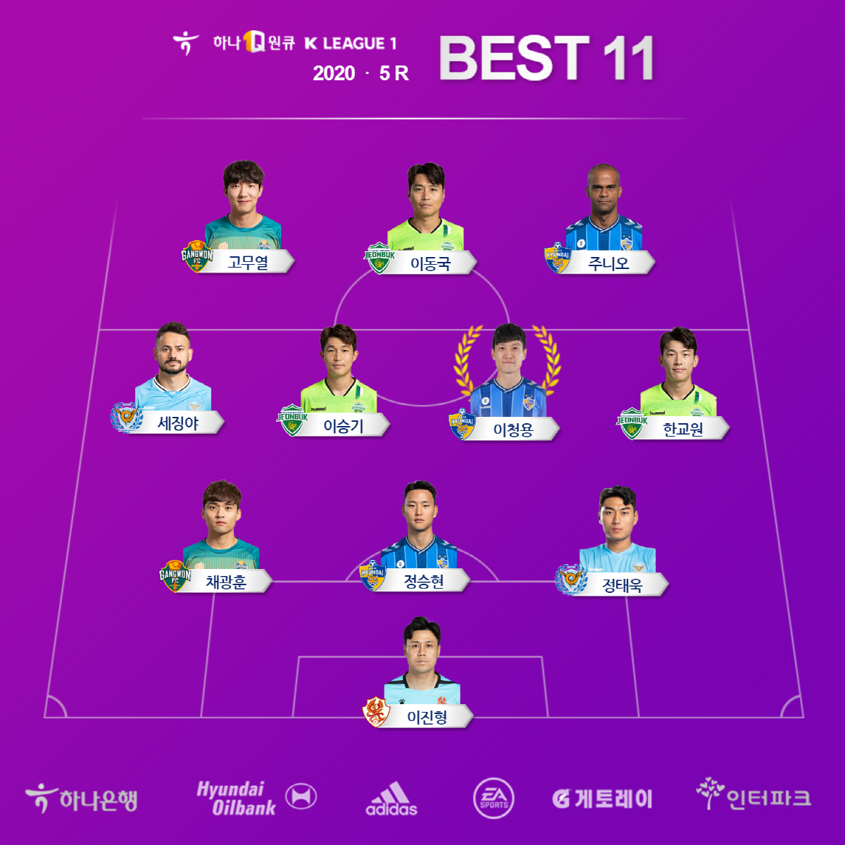 동해안더비에서 멀티 골을 터뜨리며 팀의 4-0 대승을 이끈 울산 이청용이 '하나원큐 K리그1 2020' 5라운드 MVP로 선정됐다.