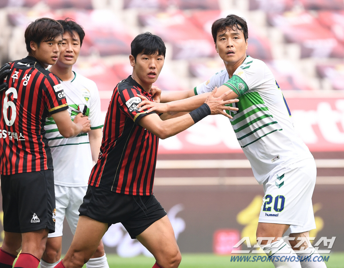 6일 오후 서울 상암동 서울월드컵경기장에서 K리그1 5라운드 FC서울과 전북 현대의 경기가 열렸다. 코너킥 상황에서 서울 김남춘과 몸싸움을 펼치고 있는 전북 이동국. 상암=송정헌 기자 songs@sportschosun.com/2020.06.06/