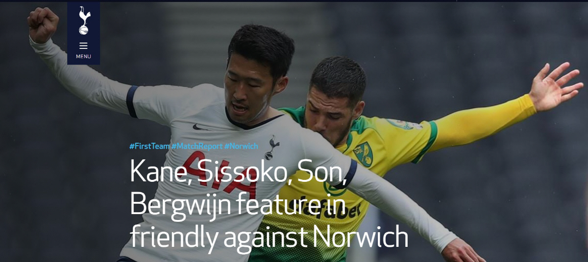 [런던(영국)=이건 스포츠조선닷컴 기자]토트넘이 노리치시티이와의 친선경기에서 패배했다.