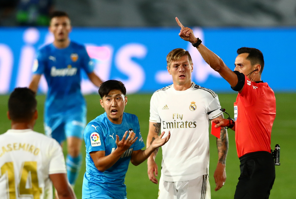 이강인 지난해 10월 열린 아틀레티코 마드리드와의 리그 9라운드 원정 경기에서 프로 첫 퇴장을 당했다. 후반 32분 데니스 체리셰프를 대신해 그라운드를 밟은 이강인은 후반 45분 역습에 나선 아틀레티코 마드리드의 산티아고 아리아스를 저지하려고 뒤쫓아가다 백태클로 넘어뜨렸다. 태클 과정에서 이강인의 왼발 축구화 스터드가 아리아스의 왼쪽 종아리를 향했다. 주심은 이강인에게 옐로카드를 내밀었지만 이내 비디오 판독(VAR)을 통해 레드카드로 바꿨다.