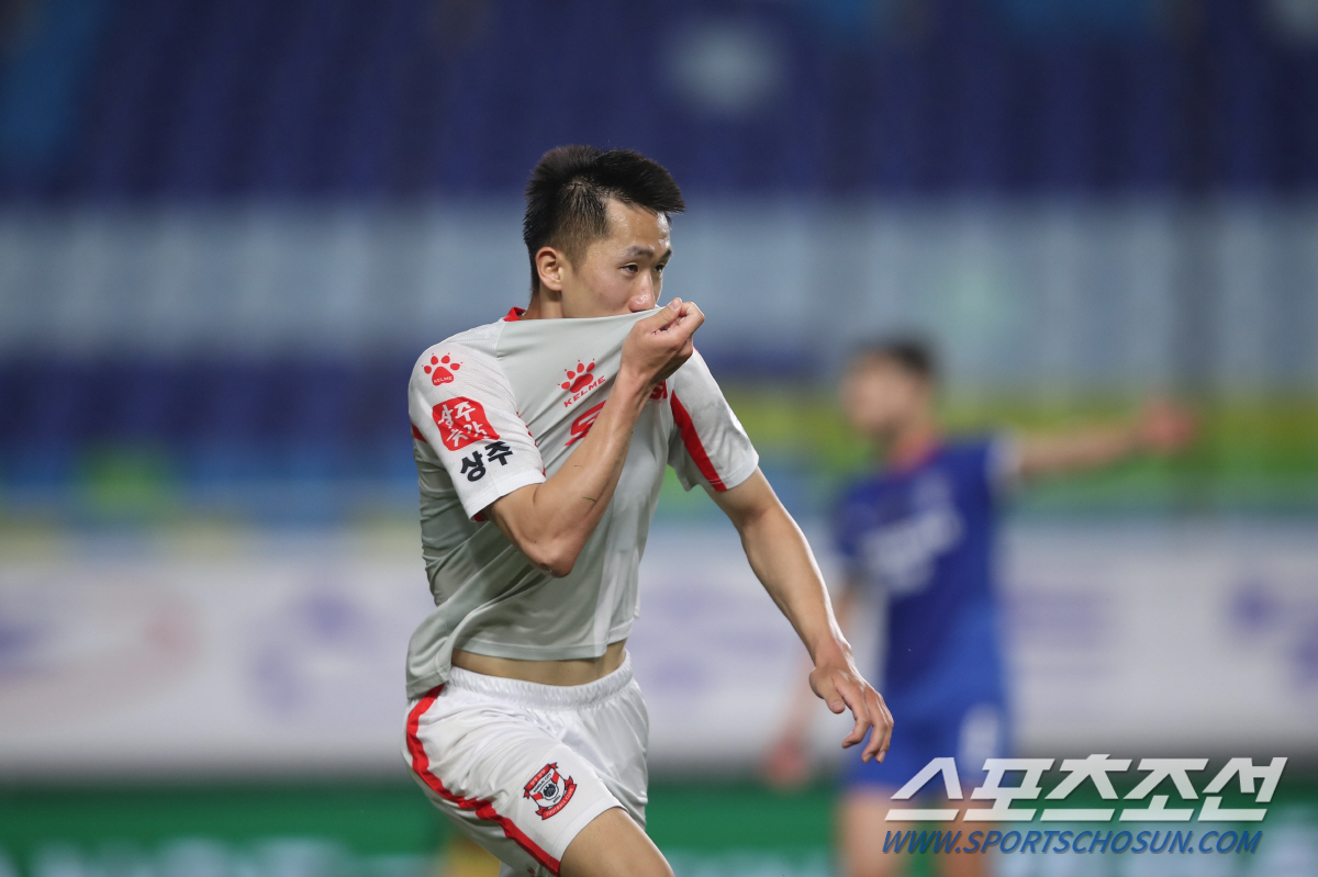 강상우가 올시즌 골을 기록한 3경기(강원, 광주, 수원)에서 상주는 모두 승리를 따냈다. '승리의 파랑새'다.