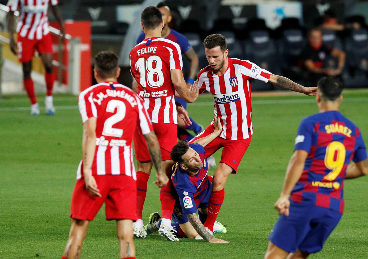 아틀레티코도 바로 반격에 나섰다. 전반 15분 페널티킥을 얻어냈다. 키커는 코스타였다. 그러나 코스타의 슈팅을 테어 슈테겐에게 막혔다. 이 때 주심이 VAR을 선언한 뒤 재차 슈팅을 명했다. 코스타가 킥을 하기 전 테어 슈테겐이 먼저 움직였다. 다시 아틀레티코의 페널티킥. 사울이 이를 골로 마무리했다. 1-1이 됐다. 바르셀로나는 전반 41분 메시의 프리킥이 오블락에게 막히고 말았다.