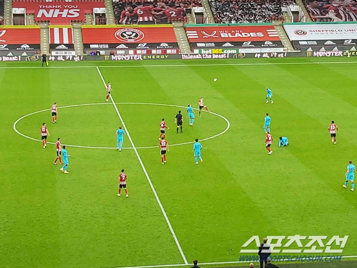 그러나 올시즌 원정에서 유독 약했던 토트넘은 뜻을 이루지 못했다.전반 31분 크리스 바샴의 컷백 패스를 이어받은 '노르웨이 국대' 산데르 베르게의 리그 데뷔골이 터졌다. 리그 재개 후 셰필드의 첫 골이었다. 골을 허용한 지 불과 1분만에 토트넘이 골망을 흔들었지만 아쉽게 무산됐다. 역습에서 모우라가 쇄도하다 수비 3명에 걸려 넘어졌고, 흘러나온 볼을 이어받은 해리 케인이 왼발로 골망을 흔들었지만 VAR 판독 후 골이 무효가 됐다. 넘어지던 모우라의 팔에 공이 닿으며 핸드볼 파울이 선언됐다.
