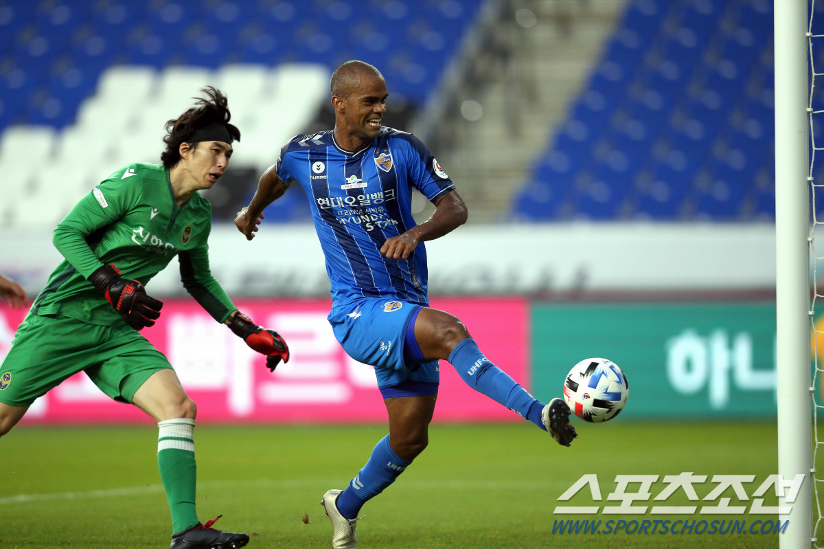 4일 '하나원큐 K리그1 2020' 10라운드 인천과의 홈경기 후반 33분, 볼이 오른발 끝에 닿는 순간, 짜릿한 해트트릭을 예감했다. 인천 골키퍼 정 산을 제쳐내고 빈 골대를 바라보는 주니오의 만면에 이미 미소가 넘쳐났다. 울산 현대 구단이 직접 찍은 골 순간 포착 사진 속 주니오의 표정엔 2018년 울산 입성 후 첫 '꿈의 해트트릭'을 눈앞에 둔 '골무원(골 넣는 공무원)'의 환희가 고스란히 담겼다.