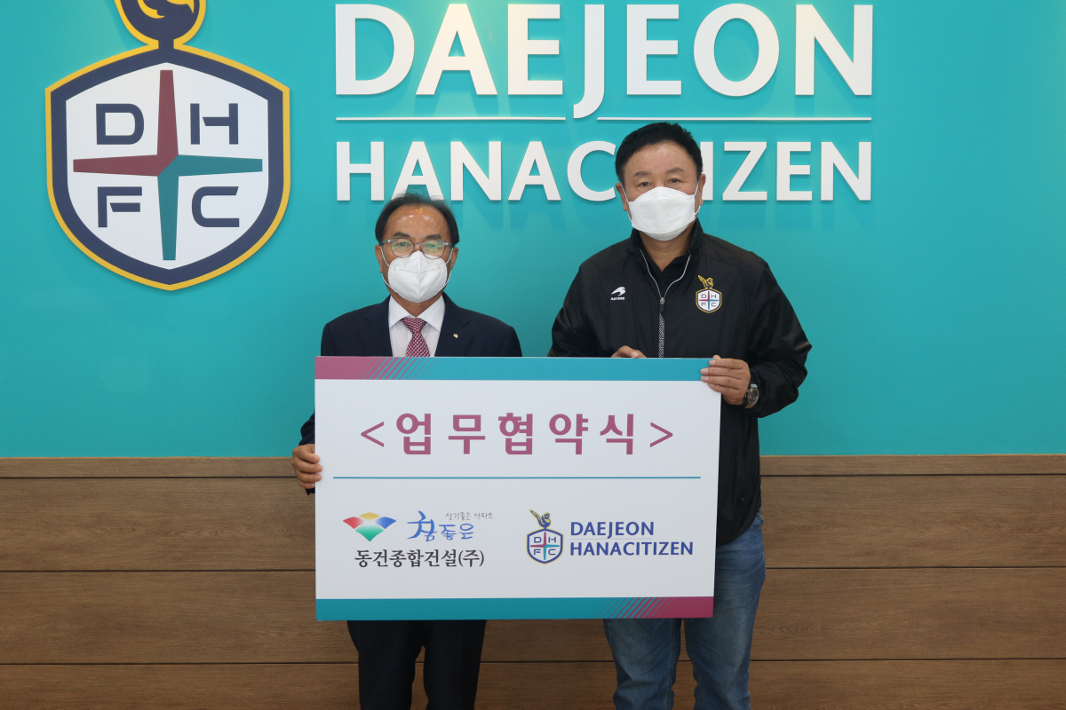 대전 하나시티즌과 동건종합건설(주)이 업무협약을 맺었다.