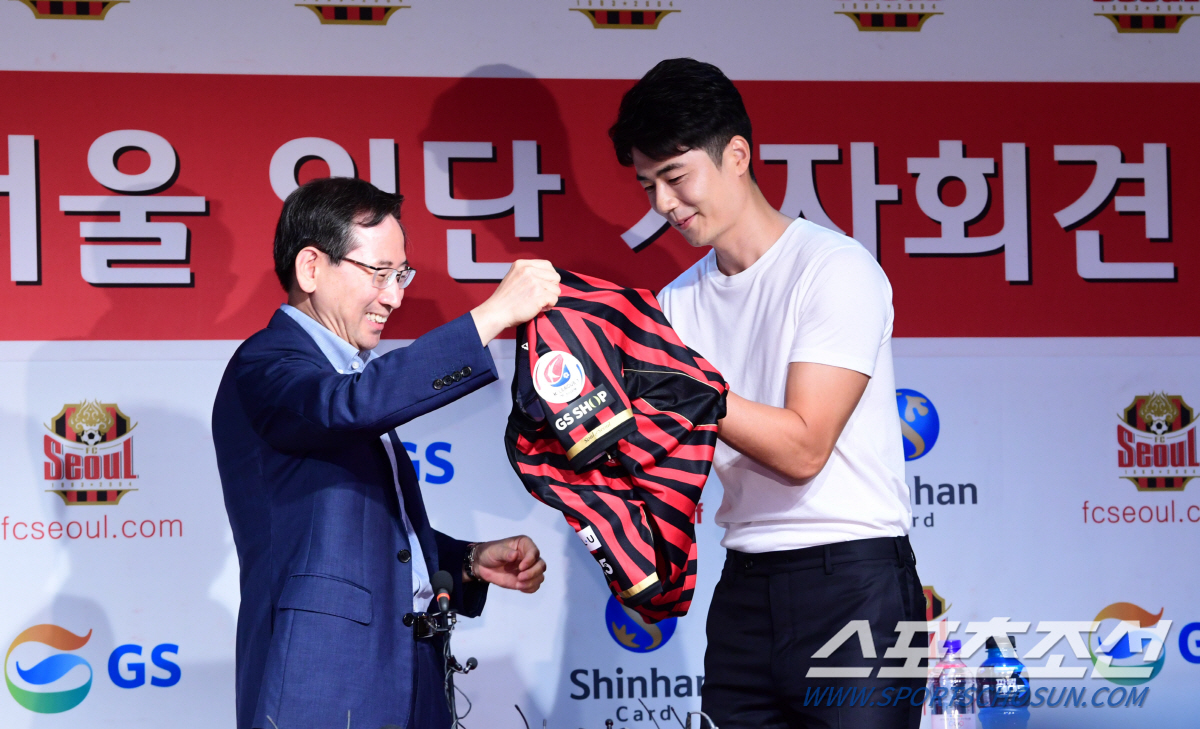 [스포츠조선 최문영 기자] "긴 시간 동안 기다려왔고 K리그에 서기 위해 그동안 많은 노력을 했다"며 "드디어 K리그에 오게 돼 행복하고 기대도 많다" 유럽리그에서 활약해온 기성용이 11년만에 친정팀 FC서울로 돌아왔다. 22일 서울 월드컵 경기장에서열린 입단식에서 기성용은 등번호 8번이 새겨진 유니폼을 입고 환하게 웃었다. 계약기간은 3년 6개월이다.