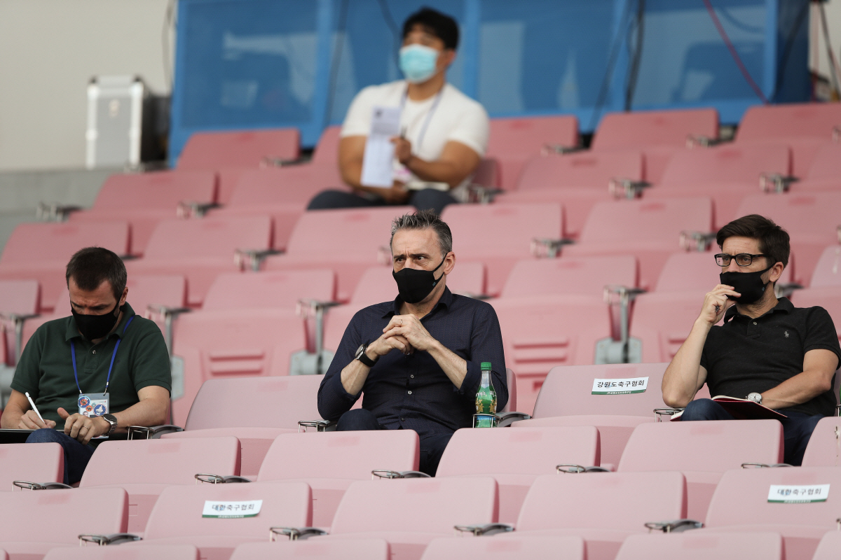 [스포츠조선 윤진만 기자]지난 25일 탄천종합운동장에서 열린 성남FC와 강원FC전에 파울로 벤투 축구대표팀 감독이 모습을 드러냈다.