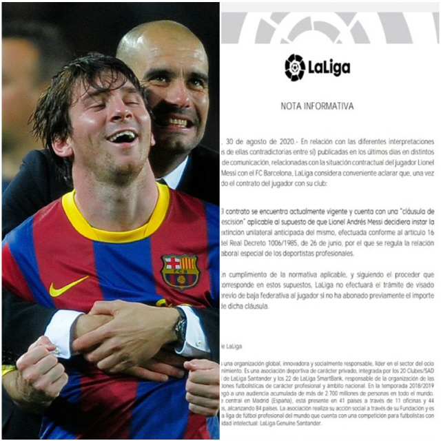 이탈리아 유명 축구 저널리스트 파브리지오 로마노는 라리가의 성명 발표 후 메시의 상황을 전했다. 메시는 최근 바르셀로나를 떠나겠다는 일방적 선언을 했으며, 이에 구단은 7억유로의 천문학적 이적료를 받지 못한다면 보낼 수 없다는 뜻을 분명히 했다. 그런 가운데 라리가 측이 유권해석에서 바르셀로나의 손을 들어줬다. 양측 계약을 볼 때, 이적료를 받아야 한다는 구단의 주장이 맞다는 것이다.