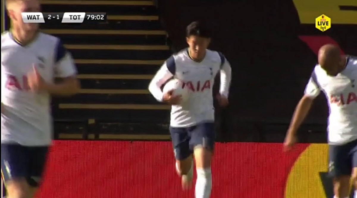 1골을 따라붙은 토트넘은 동점골을 향해 계속 공격을 펼쳐나갔다. 후반 43분 손흥민이 왼쪽에서 날카롭게 크로스했다. 바로 앞에서 아쉽게도 걸리고 말았다.